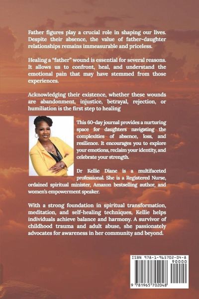 Father figures play a crucial role in shaping our lives. Despite their absence, the value of father-daughter relationships remains immeasurable and priceless Healing a "father" wound is essential for several reasons. It allows us to confront, heal, and understand the emotional pain that may have stemmed from those experiences. Acknowledging their existence, whether these wounds are abandonment, injustice, betrayal, rejection, or humiliation, is the first step to healing. This 60-day journal provides a nurturing space for daughters navigating the complexities of absence, loss, and resilience. It encourages you to explore your emotions, reclaim your identity, and celebrate your strength.