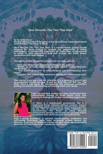 Finally! A Journal That Addresses Sibling Rivalry: Soul Wounds: The Ties That Bind - Navigating Sibling Rivalry and Healing by Dr. Kellie Diane. 10x Best-Selling Author & Recipient of the International Impact Book Award Introducing the eighth installment in the powerful, award-winning bestselling "Soul Wounds" series! Are you ready to transform your sibling relationships? "Soul Wounds: The Ties That Bind" is a groundbreaking guided journal designed for those seeking to navigate the complexities of sibling dynamics. In this heartfelt exploration, Dr. Kellie Diane invites you to reflect on your experiences, heal past wounds, and foster deeper connections with your siblings. Through a series of thoughtful prompts and exercises, you will: Delve into the Intricate Dynamics: Explore the delicate balance of sibling rivalry and love and understand how these relationships shape your life. Reflect on Personal Experiences: Gain valuable insights into your unique relationships, uncovering patterns that may have gone unnoticed. Heal Emotional Wounds: Acknowledge and understand the impact of past hurts, paving the way for forgiveness and reconciliation. Empower Your Journey Cultivate awareness and embrace your truth, empowering you to create healthier, more fulfilling connections. This journal is not just a tool for reflection; it is a transformative pathway to growth and reconciliation. Suitable for ages 16 and up, Soul Wounds: The Ties That Bind offers a safe space for introspection and emotional exploration, guiding you toward understanding and healing within your family. Join the countless readers who have transformed their relationships through Dr. Kellie Diane's work. Your journey to healing and deeper connections begins here.