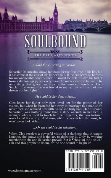 A dark force is rising in London... Sebastian Montcalm knows freedom for the first time in his life, but it has come at the cost of his father's soul. If he can learn to harness his uncontrollable sorcery then he might be able to save his father from a demon's grip, but every move he makes leads to failure. The only thing that gives him hope is the innocent touch of Cleo Sinclair, the woman he was forced to marry. But will his darkness drown out her light? He could be her destruction… Cleo knew her father only ever loved her for the power of her visions, but when he bartered her away in marriage to a man she'd never met, she realized how little value she truly had. Her husband, Sebastian, was nothing more than a dark warmth in her bed, a stranger who refused to touch her. But together, the two tortured souls found friendship. And now, when he needs her the most, he won't even look at her. ...Or she could be his salvation... When Cleo receives a powerful vision of a darkness that threatens London, she knows she is the key to defeating it. Only by working together can she and Sebastian prevail. But is Sebastian the one who can end this prophetic doom, or the one bound to begin it?