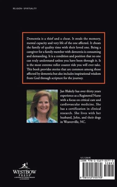 Dementia is a thief and a cheat. It steals the memory, mental capacity and very life of the one affected. It cheats the family of quality time with their loved one. Being a caregiver for a family member with dementia is consuming and demanding. It is a condition and position that no one can truly understand unless you have been through it. It is the most extreme roller coaster ride you will ever take. This book provides stories that are common among those affected by dementia but also includes inspirational wisdom from God through scripture for the journey.