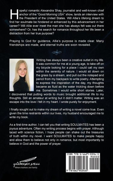 Hopeful romantic Alexandra Shay, journalist and well-known chief anchor of the "Good Morning USA" show, lands an interview with the president of the United States. Will Allie's lifelong dream to find her soulmate be hindered or enhanced by this advancement in her career? Will Allie ever meet the man she has always felt was out there somewhere? Or, has the search for romance throughout her life been a distraction from her true purpose? Praying to God for guidance, Allie's purpose is made clear. Many friendships are made and eternal truths are soon revealed.