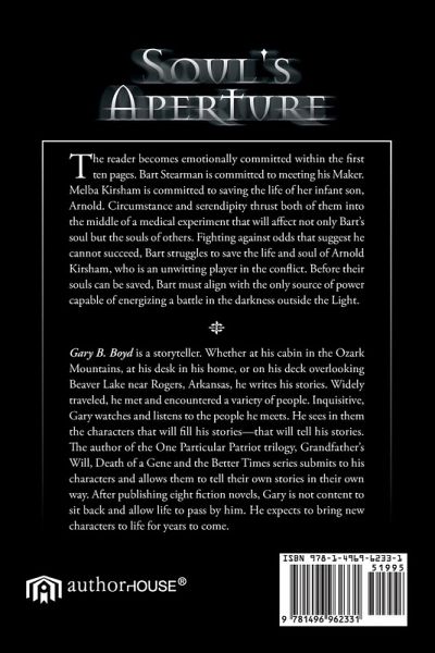The reader becomes emotionally committed within the first ten pages. Bart Stearman is committed to meeting his Maker. Melba Kirsham is committed to saving the life of her infant son, Arnold. Circumstance and serendipity thrust both of them into the middle of a medical experiment that will affect not only Bart's soul but the souls of others. Fighting against odds that suggest he cannot succeed, Bart struggles to save the life and soul of Arnold Kirsham, who is an unwitting player in the conflict. Before their souls can be saved, Bart must align with the only source of power capable of energizing a battle in the darkness outside the Light.