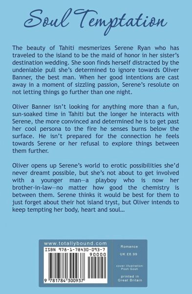 Unexpected passions will tempt two lovers-body, heart and soul... The beauty of Tahiti mesmerises Serene Ryan who has travelled to the island to be the maid of honour in her sister's destination wedding. She soon finds herself distracted by the undeniable pull she's determined to ignore towards Oliver Banner, the best man. When her good intentions are cast away in a moment of sizzling passion, Serene's resolute on not letting things go further than one night. Oliver Banner isn't looking for anything more than a fun, sun-soaked time in Tahiti but the longer he interacts with Serene, the more convinced and determined he is to get past her cool persona to the fire he senses burns below the surface. He isn't prepared for the connection he feels towards Serene or her refusal to explore things between them further. Oliver opens up Serene's world to erotic possibilities she'd never dreamt possible, but she's not about to get involved with a younger man-a playboy who is now her brother-in-law-no matter how good the chemistry is between them. Serene thinks it would be best for them to just forget about their hot island tryst, but Oliver intends to keep tempting her body, heart and soul...