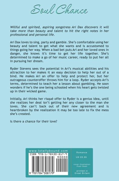 Willful and spirited, aspiring songstress Ari Dax discovers it will take more than beauty and talent to hit the right notes in her professional and personal life. Ari Dax loves to sing, party and gamble. She's comfortable using her beauty and talent to get what she wants and is accustomed to things going her way. When a bad bet puts Ari and her loved ones in danger, she knows it's time to get her life together. She's determined to make a go of her music career, ready to put her all in pursuing her dream. Ryder Stevens sees the potential in Ari's musical abilities and his attraction to her makes it an easy decision to help her out of a bind. He makes Ari an offer to help and protect her, but her outrageous counteroffer throws him for a loop. Ryder accepts Ari's terms, determined to teach her a lesson about gambling. He soon wonders if he's the one being schooled when his heart gets twisted up in their wicked game. Initially, Ari thinks her risqué offer to Ryder is a genius idea, until she realizes her deal isn't getting her any closer to the man she loves. She can't back out of their new agreement and is heartbroken by the realization it may be too late to fix the mess she's created. Is there a chance for their love?