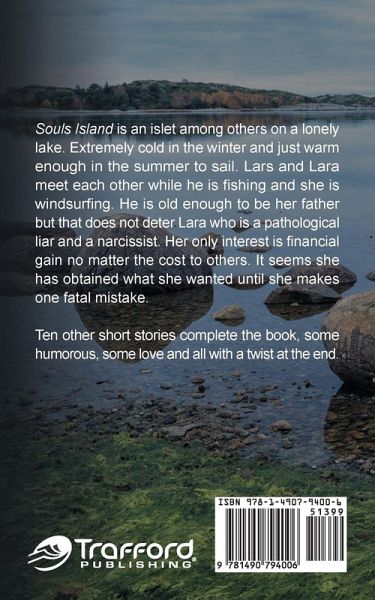 Souls Island is an islet among others on a lonely lake. Extremely cold in the winter and just warm enough in the summer to sail. Lars and Lara meet each other while he is fishing and she is windsurfing. He is old enough to be her father but that does not deter Lara who is a pathological liar and a narcissist. Her only interest is financial gain no matter the cost to others. It seems she has obtained what she wanted until she makes one fatal mistake. Ten other short stories complete the book, some humorous, some love and all with a twist at the end.
