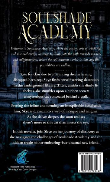 Welcome to Soulshade Academy, where the ancient arts of witchcraft and spiritual energy converge to illuminate the path towards mastery and enlightenment; where the veil between worlds is thin, and the possibilities are endless... Late for class due to a haunting dream having disrupted her sleep, Skye finds herself serving detention in the underground library. There, amidst the dimly lit shelves, she stumbles upon a hidden secret: a mysterious cat concealed behind a wall. Freeing the feline and forming an inexplicable bond with him, Skye is drawn into a web of intrigue and enigma. As she delves deeper, she soon realises there's more to this cat than meets the eye. In this novella, join Skye on her journey of discovery as she navigates the challenges of Soulshade Academy and the hidden truths of her endearing-but-unusual new friend.