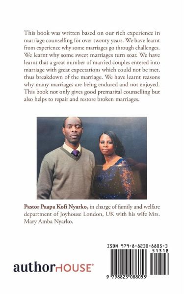 This book was written based on our rich experience in marriage counselling for over twenty years. We have learnt from experience why some marriages go through challenges. We learnt why some sweet marriages turn soar. We have learnt that a great number of married couples entered into marriage with great expectations which could not be met, thus breakdown of the marriage. We have learnt reasons why many marriages are being endured and not enjoyed. This book not only gives good premarital counselling but also helps to repair and restore broken marriages.
