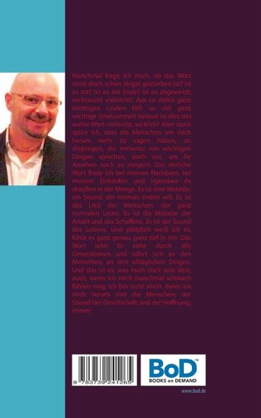 Manchmal frage ich mich, ob das Wort nicht doch schon längst gestorben ist? Ist es tot? Ist es am Ende? Ist es abgewetzt, verbraucht vielleicht? Aus so vielen ganz wichtigen Leuten fällt so viel ganz wichtige Unwissenheit heraus! Ist dies das wahre Wort vielleicht, wirklich? Aber dann spüre ich, dass die Menschen um mich herum mehr zu sagen haben, als diejenigen, die immerzu von wichtigen Dingen sprechen, doch nur, um ihr Ansehen noch zu steigern. Das ehrliche Wort finde ich bei meinen Nachbarn, bei meinen Einkäufen und irgendwo da draußen in der Menge. Es ist eine Melodie, ein Sound, der niemals enden will. Es ist das Lied der Menschen, der ganz normalen Leute. Es ist die Melodie der Arbeit und des Schaffens. Es ist der Sound des Lebens. Und plötzlich weiß ich es, fühle es ganz genau, ganz tief in mir: Das Wort lebt! Es zieht durch alle Generationen und nährt sich an den Menschen, an den alltäglichen Dingen. Und das ist es, was mich stark sein lässt, auch, wenn ich mich manchmalschwach fühlen mag. Ich bin nicht allein, denn um mich herum sind die Menschen, der Sound der Gesellschaft und der Hoffnung, immer.