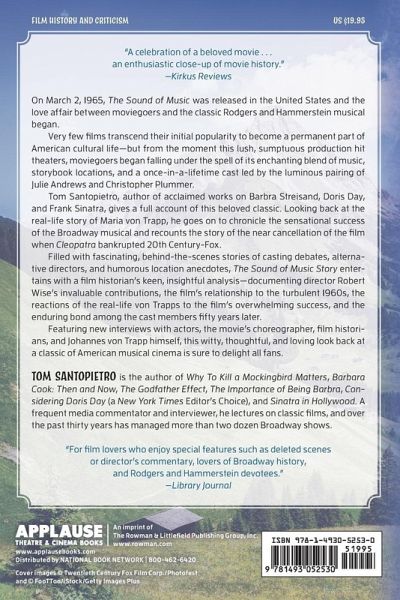 Tom Santopietro has written the ultimate Sound of Music fan book with all the details from behind-the-scenes stories of the filming in Austria and Hollywood to new interviews with Johannes von Trapp and others. Santopietro looks back at the real-life story of Maria von Trapp, goes on to chronicle the sensational success of the Broadway musical, and recounts the story of the near cancellation of the film when Cleopatra bankrupted 20th Century Fox.