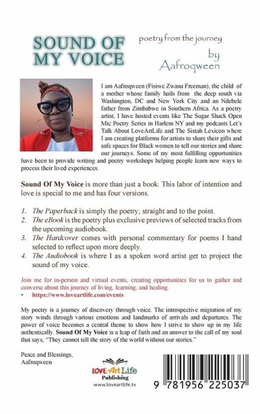 Aafroqween (Fisiwe Zwana Freeman) is a poet, spoken word artist, vocalist, and published author of a collection of poems entitled lovewords: poetry from a place called love. She is the Founder and first Host of The Sugar Shack Café Open Mic Showcase and was one of the hosts of Hottest Poets Open Mic at Mocha Lounge, in Harlem NY. Aafroqween has performed from Canada to Atlanta. She is a member of the Spoken Word-Song and Dance Trio, Precious Gift (with Tantra Zawadi and Iyapiphany), who released their Selling My Diamonds poetry album at Danny Simmons' Corridor Gallery in Brooklyn, NY. She was a featured voice on Talaam Acey's Morally Bankrupt Volume One: The Wickedest Man In Babylon and Mood Demystify, Queen Sheba's Domino Effect, and Les Nubians Presents -Echos- Chapter One "Nubian Voyager". She released a joint project Natural-Bring That Poem Home with bandmate Tantra Zawadi. Aafroqween's work as a poet is a journey of discovery through voice. The introspective migration of her story winds through various emotions and landmarks of arrivals and departures. The power of voice becomes a central theme to show how she strives to show up in her life authentically.