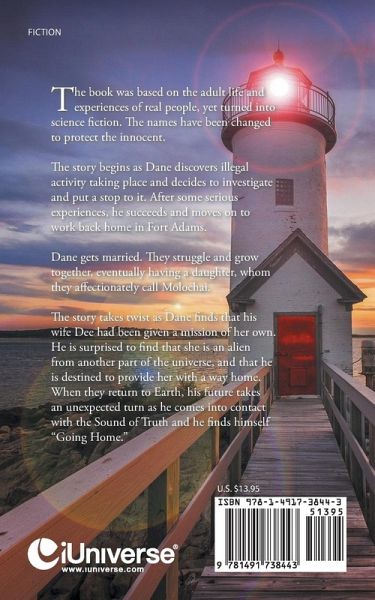 The book was based on the adult life and experiences of real people, yet turned into science fiction. The names have been changed to protect the innocent. The story begins as Dane discovers illegal activity taking place and decides to investigate and put a stop to it. After some serious experiences, he succeeds and moves on to work back home in Fort Adams. Dane gets married. They struggle and grow together, eventually having a daughter, whom they affectionately call Molochai. The story takes twist as Dane finds that his wife Dee had been given a mission of her own. He is surprised to find that she is an alien from another part of the universe, and that he is destined to provide her with a way home. When they return to Earth, his future takes an unexpected turn as he comes into contact with the Sound of Truth and he finds himself "Going Home."