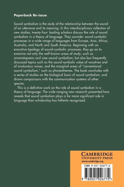 Sound symbolism is the study of the relationship between the sound of an utterance and its meaning. In this interdisciplinary collection of new studies, twenty-four leading scholars discuss the role of sound symbolism in a theory of language. They consider sound symbolic processes in a wide range of languages from Europe, Asia, Africa, Australia, and North and South America. Beginning with an evocative typology of sound symbolic processes, they go on to examine not only the well-known areas of study, such as onomatopoeia and size sound symbolism, but also less frequently discussed topics such as the sound symbolic value of vocatives and of involuntary noises, and the marginal areas of 'conventional sound symbolism', such as phonesthemes. The book concludes with a series of studies on the biological basis of sound symbolism, and draws comparisons with the communication systems of other species. This is a definitive work on the role of sound symbolism in a theory of language.