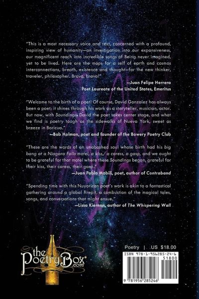"Here are the maps for a self of earth and cosmos interconnections, breath, existence and thought-for the new thinker, traveler, philosopher. Bravo, brava!"-Juan Felipe Herrera, Poet Laureate of the United States, Emeritus Soundings, the debut book of poetry by famed storyteller and musician David Gonzalez, is an eclectic collection that dives into five facets of his experience, each one adding a new layer of meaning and color: Nuyorican explores contemporary Latinx life; Rings of Fire, Ice and Jazz focuses on music and myth; Entanglement centers on science and wonder; Above, Below, In Between looks into the natural world; Back to the Beginning moves through birth, death, and redemption.