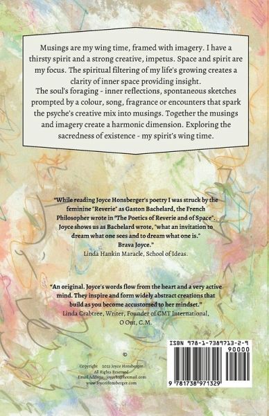 Musings of the sounds in nature and nature's influence into everyday life. From the footsteps of a child to Beethoven's 5th, the wonders found around us help to ground our thoughts, feed our dreams, and find comforts in the mundane of daily life. Each page of these musings takes you on a written journey with the author, paired with one of a kind imagery that has been created especially for these works by this wonderful artist and poet.
