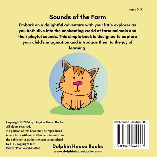 Embark on a delightful adventure with your little explorer as you both dive into the enchanting world of farm animals and their playful sounds. This simple book captures your child's imagination and introduces them to the joy of learning. Inspire your little one to have a blast, being joyfully expressive by making those adorable animal sounds! Share this inspiring message on every special occasion in a young child's life! Sounds of the Farm makes for the perfect:Baby shower gift Baby's first birthday Baby's Christmas Check out our Sounds of the Farm book in Spanish: Sonidos de la Granja!