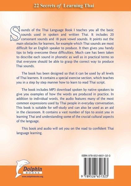 The price includes free MP3 files spoken by native speakers. They can be downloaded from the address: www.thaibooks.net Sounds of the Thai language Book I teaches you all the basic sounds used in spoken and written Thai. It includes 20 consonant sounds and 18 pure vowel sounds. It points out the main obstacles for learners, for example which Thai sounds are most difficult for an English speaker to produce. It then gives you handy tips to help overcome these difficulties. Much care has been taken to describe each sound in phonetic as well as in practical terms so that everyone should be able to grasp the correct way to produce Thai sounds. The book has been designed so that it can be used by all levels of Thai learners. It contains a special exercise section, which teaches you in a step by step manner how to learn to read Thai script. The book includes MP3 download spoken by native speakers to give you examples of how the words are produced in practice. In addition to individual words, the audio features many of the most common expressions used by Thai people in everyday conversation. This book is suitable for self-study and can also be used as an aid in the classroom. It contains a vast number of tips to assist you in learning Thai and understanding some of the crucial cultural aspects of the language. This book and audio will set you on the road to confident Thai language learning. In the Book II - Advanced Sounds we compare complex Thai sounds such as consonant clusters, rare consonants, vowel combinations, final sounds and tones in order to give you a complete picture of the Thai language and writing system.