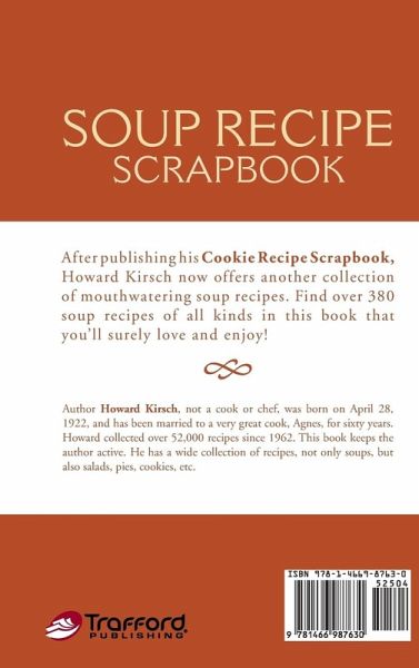 After publishing his Cookie Recipe Scrapbook, Howard Kirsch now offers another collection of mouthwatering soup recipes. Find over 380 soup recipes of all kinds in this book that you'll surely love and enjoy!