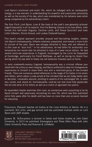 Both Lord Byron’s poetry and his fame as a seducer enchanted and scandalized his time. The Sour Fruit. Lord Byron, Love & Sex examines the poet’s versatile sexuality, from his liaisons to his grand loves, female and above all male, in an era when homosexuality could lead to the gallows.