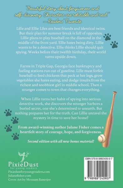 For fans of Because of Winn-Dixie, Pippa Park Raises Her Game, or The Lemonade War comes a heartfelt story of courage, hope, and forgiveness. "A beautiful story about forgiveness and self-discovery, characters are relatable and real." -Readers' Favorite Lille and Ellie Liles are best friends and identical twins. But their plan for summer break is full of opposites. Lillie plans to play baseball on the diamond in the middle of the front yard. Ellie hates being dirty. Lillie wants to be a detective. Ellie thinks Lillie should quit spying. Weeks before their twelfth birthday, their world turns upside down. Farms in Triple Gap, Georgia face bankruptcy and fueling stations run out of gasoline. Lille must forfeit baseball to feed chickens that peck at her legs, grow vegetables she hates eating, and dodge insults from the richest and snobbiest girl in middle school. Then a stranger comes to town that changes everything. When Lillie turns her habit of spying into serious detective work, she discovers the stranger harbors a buried secret, one she's determined to unearth. But nothing prepares her for the truth. Can Lillie unravel the mystery in time to save her home? Award-winning author Julane Fisher brings back this beloved classic in a second edition with all new bonus material!