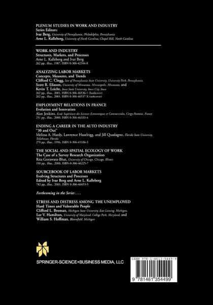A distinguished roster of contributors considers the state of the art of the field at the turn of the 21st century and charts an ambitious agenda for the future. Following what the editors describe as an `evolutionist' approach to the study of labor markets, the chapters address issues of continuity and discontinuity in a wide range of topics including: markets and institutional structures; employment relations and work structures; patterns of stratification in the United States; and public policies, opportunity structures, and economic outcomes.