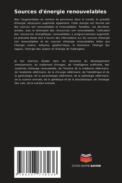 Avec l'augmentation du nombre de personnes dans le monde, la quantité d'énergie nécessaire augmente également. Cette énergie est fournie par des sources non renouvelables et renouvelables. Toutefois, ces dernières années, avec la diminution des ressources non renouvelables, l'utilisation des ressources énergétiques renouvelables a progressivement augmenté. La présente étude vise à fournir des informations sur les sources d'énergie non renouvelables et les sources d'énergie renouvelables telles que l'énergie solaire, éolienne, géothermique, la biomasse, l'énergie des vagues, l'énergie des océans et l'énergie de l'hydrogène.