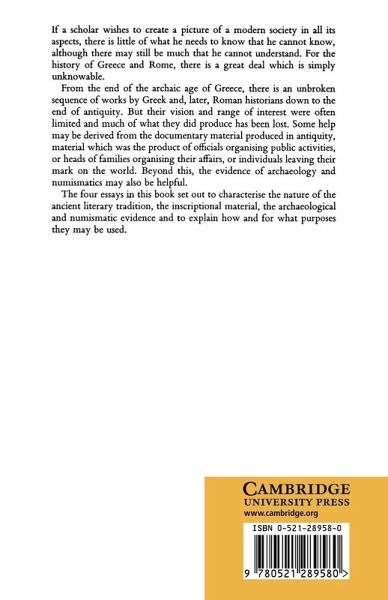 If a scholar wishes to create a picture of a modern society in all its aspects, there is little of what he needs to know that he cannot know, although there may still be much that he cannot understand. For the history of Greece and Rome, there is a great deal which is simply unknowable. From the end of the archaic age of Greece, there is an unbroken sequence of works by Greek and, later, Roman historians down to the end of antiquity. But their vision and range of interest were often limited and much of what they did produce has been lost. Some help may be derived from the documentary material produced in antiquity, material which was the product of officials organising public activities, or heads of families organising their affairs, or individuals leaving their mark on the world. Beyond this, the evidence of archaeology and numismatics may also be helpful. The four essays in this book set out to characterise the nature of the ancient literary tradition, the inscriptional material, the archaeological and numismatic evidence and to explain how and for what purposes they may be used.