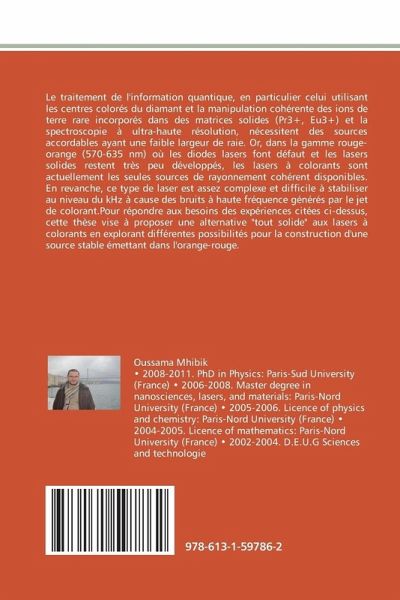 Le traitement de l'information quantique, en particulier celui utilisant les centres colorés du diamant et la manipulation cohérente des ions de terre rare incorporés dans des matrices solides (Pr3+, Eu3+) et la spectroscopie à ultra-haute résolution, nécessitent des sources accordables ayant une faible largeur de raie. Or, dans la gamme rouge-orange (570-635 nm) où les diodes lasers font défaut et les lasers solides restent très peu développés, les lasers à colorants sont actuellement les seules sources de rayonnement cohérent disponibles. En revanche, ce type de laser est assez complexe et difficile à stabiliser au niveau du kHz à cause des bruits à haute fréquence générés par le jet de colorant.Pour répondre aux besoins des expériences citées ci-dessus, cette thèse vise à proposer une alternative "tout solide" aux lasers à colorants en explorant différentes possibilités pour la construction d'une source stable émettant dans l'orange-rouge.
