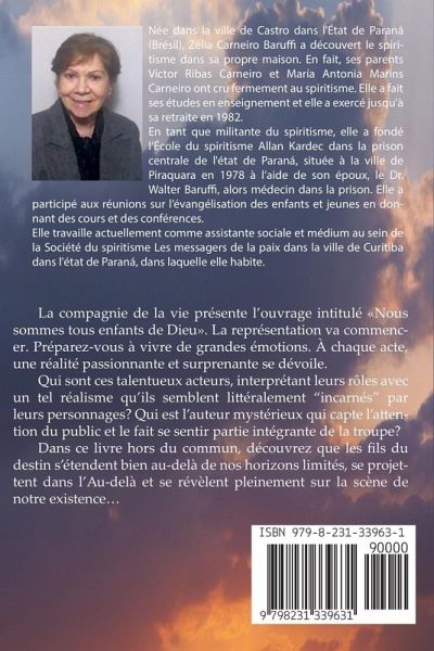 La compagnie de la vie présente l'ouvrage intitulé ¿Nous sommes tous enfants de Dieü. La représentation va commencer. Préparez-vous à vivre de grandes émotions. À chaque acte, une réalité passionnante et surprenante se dévoile. Qui sont ces talentueux acteurs, interprétant leurs rôles avec un tel réalisme qu'ils semblent littéralement "incarnés" par leurs personnages¿? Qui est l'auteur mystérieux qui capte l'attention du public et le fait se sentir partie intégrante de la troupe¿? Dans ce livre hors du commun, découvrez que les fils du destin s'étendent bien au-delà de nos horizons limités, se projettent dans l'Au-delà et se révèlent pleinement sur la scène de notre existence...