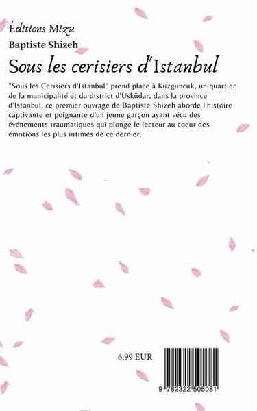 "Sous les Cerisiers d'Istanbul" prend place à Kuzguncuk, un quartier de la municipalité et du district d'Üsküdar, dans la province d'Istanbul, ce premier ouvrage de Baptiste Shizeh aborde l'histoire captivante et poignante d'un jeune garçon ayant vécu des événements traumatiques qui plonge le lecteur au coeur des émotions les plus intimes de ce dernier.