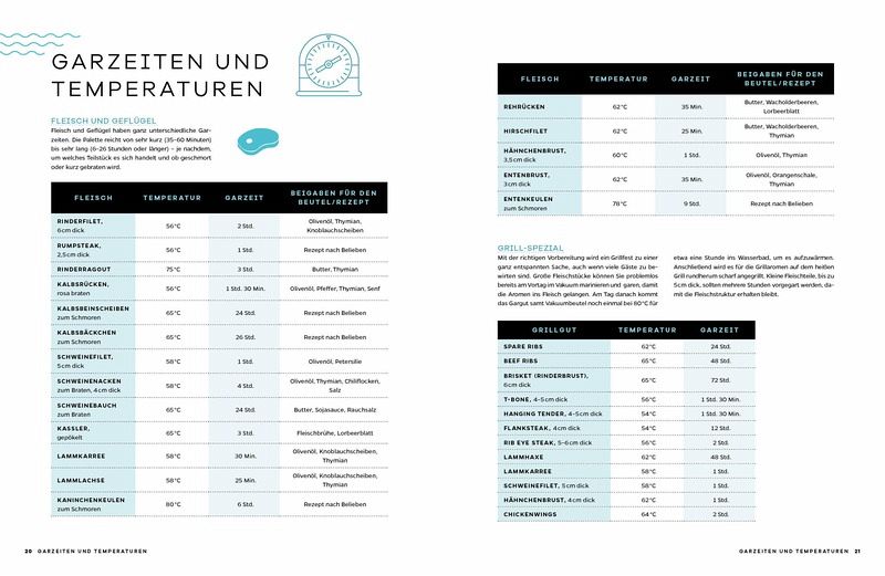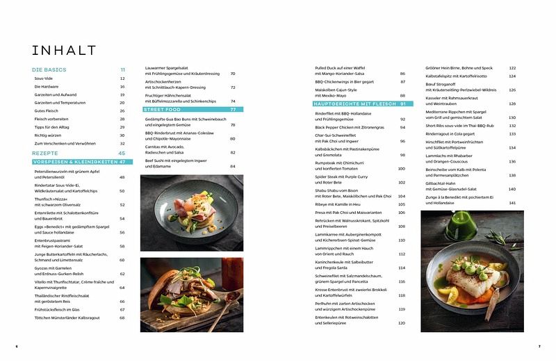 Über 80 Rezepte mit Fisch, Fleisch und Gemüse sowie spannende Dessert-KreationenPraktische Garzeitentabellen, die es erleichtern, jegliches Gargut auf den Punkt genau zu garen sowie Tipps und Tricks für die richtige Hardware und das ZubehörMenü-Vorschläge mit denen sich ein unvergesslicher kulinarischer Abend gestalten lässt, der Ihre Gäste wunschlos glücklich zurücklässt