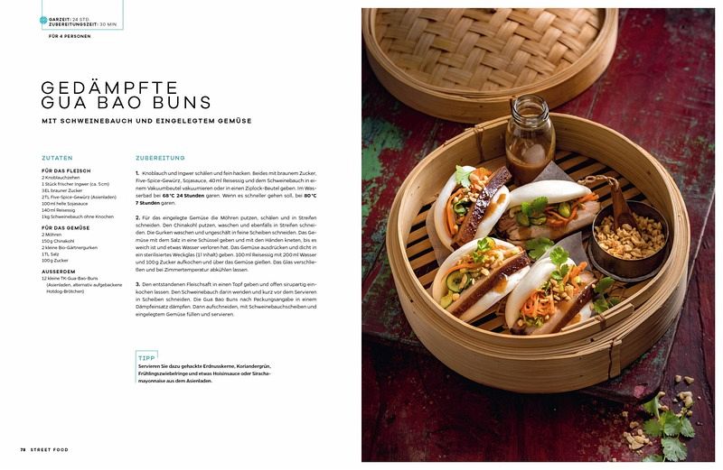 Dieses Buch lässt keine Wünsche offen: Vorspeisen und Kleinigkeiten, Streetfood, Hauptgerichte mit Fleisch oder Fisch, Vegetarische Gerichte, Suppen & Eintöpfe, Eingelegtes & mehr und Desserts bedienen hier Ihre Lust an sous-vide gegarten Leckereien. Sowohl butterzartes Lamm, als auch saftiger Schokoladenkuchen lassen sich also mit Hilfe dieser Rezeptsammlung einfach und unkompliziert zubereiten. Neben hilfreichen Informationen für die richtige Hardware - eines sei gesagt: sie müssen nicht sofort eine große Summe in teure Geräte investieren, hier gibt es auch einfache und günstige Möglichkeiten - finden sich auch viele Tipps für eine Zubereitung ohne viel Aufwand. Echte Gourmet-Gerichte mit exzellentem Geschmack wie aus dem Sterne-Restaurant für zu Hause!