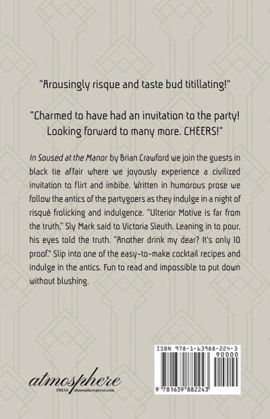 "Arousingly risqué and taste bud titillating!" "Charmed to have had an invitation to the party! Looking forward to many more. CHEERS!" In Soused at the Manor by Brian Crawford we join the guests in black tie affair where we joyously experience a civilized invitation to flirt and imbibe. Written in humorous prose we follow the antics of the partygoers as they indulge in a night of risqué frolicking and indulgence. "Ulterior Motive is far from the truth," Sly Mark said to Victoria Sleuth. Leaning in to pour, his eyes told the truth. "Another drink my dear? It's only 10 proof." Slip into one of the easy to make cocktail recipes and indulge in the antics. Fun to read and impossible to put down without blushing.