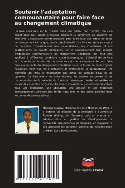 Un livre sera mis sur le marché dans une édition bon marché, mais en priant pour qu'il donne à chaque dirigeant le sentiment de soutenir les initiatives d'adaptation communautaire pour faire face aux effets néfastes du changement climatique, tandis que l'objectif d'un livre est de transmettre de nouvelles connaissances aux universitaires, aux chercheurs et aux gestionnaires de projets intéressés par le développement d'un modèle d'adaptation communautaire au changement climatique, qui peut être appliqué à différentes conditions socio-économiques. L'objectif de ce livre est de renforcer la sécurité humaine au sein de la communauté pour faire face aux impacts du changement climatique sous la forme de catastrophes naturelles telles que les inondations, la sécheresse, la déforestation, les incendies de forêt, la destruction des zones de captage d'eau et les cyclones. Ce livre aidera les universitaires, les auteurs de projets et les responsables de la collecte de fonds à développer, tester et mettre en oeuvre des modèles de gestion forestière conjointe largement reproductibles pour une production, une utilisation, une gestion et une protection écologiquement durables des forêts naturelles et des zones boisées dans les zones de projets pilotes.