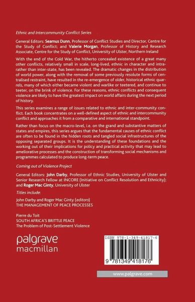 South Africa has succeeded in establishing a democracy, but has yet to eliminate public violence from society. This book takes up the issue of post-settlement violence and ways of consolidating the newly found democratic peace. The role of negotiated institutions such as the new police force, economic factors relevant to the anticipated 'peace dividend', external factors such as arms smuggling networks, popular responses to rising threats to physical safety, and symbolic factors in enhancing the capacity of the state to deal with this issue are examined.
