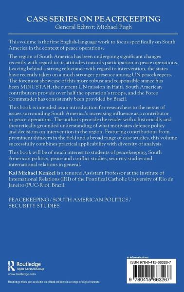 Introduction: Diversity Within a Common Culture: South America and Peace Operations, KAI MICHAEL KENKEL 1. Assumptions on Intervention and Security in South America, MONICA HERZ 2. Democratization and Commitment to Peace: South America's Motivations to Contribute to Peace Operations, ARTURO C. SOTOMAYOR VELÁZQUEZ 3. Regional Defense Integration and Peacekeeping Cooperation in the Southern Cone, DANILO MARCONDES DE SOUZA NETO 4. Out of South America to the Globe: Brazil's Growing Stake in Peace Operations, KAI MICHAEL KENKEL 5. Punching Above its Weight: Uruguay and UN Peace Operations, JULIÁN GONZÁLEZ GUYER 6. From Fear to Humanitarianism: Changing Patterns in Argentina's Involvement in Peace Operations, RUT DIAMINT 7. Learning to be Likeminded: Chile's Involvement in Global Security and Peace Operations Since the End of the Cold War, ANDREAS E. FELDMANN AND JUAN ESTEBAN MONTES 8. Swimming Against the Tide: Venezuela and Peace Operations, JULIA D. BUXTON Conclusions: Securing South America's Peace Operations Acquis Post-MINUSTAH, KAI MICHAEL KENKEL