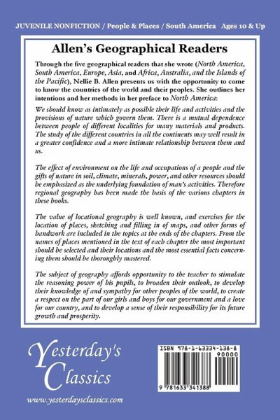 Embark on a voyage through all the countries of South America, with Nellie B. Allen as your guide, pointing out interesting sights along the route and sharing stories about them. In that way you will learn about such activities as the tapping of rubber trees in the Amazon rain forest, the picking of coffee berries in Sao Paolo, and the harvesting of cacao beans in Ecuador as well as getting to know something about the workers involved in their production. You will observe the crafting of Panama hats and the spinning of yarn and weaving of ponchos. You will wonder at all the mining activities: nitrate and guano on the coast and gold and other metals in the interior. And you will hear stories of the discovery of the continent by Europeans, how Magellan sailed through his strait and Pizarro conquered the Incas in Peru. Embark on a voyage through all the countries of South America, with Nellie B. Allen as your guide, pointing out interesting sights along the route and sharing stories about them. In that way you will learn about such activities as the tapping of rubber trees in the Amazon rain forest, the picking of coffee berries in Sao Paolo, and the harvesting of cacao beans in Ecuador as well as getting to know something about the workers involved in their production. You will observe the crafting of Panama hats and the spinning of yarn and weaving of ponchos. You will wonder at all the mining activities: nitrate and guano on the coast and gold and other metals in the interior. And you will hear stories of the discovery of the continent by Europeans, how Magellan sailed through his strait and Pizarro conquered the Incas in Peru. More than anything you will come to appreciate that South America is a land of contrasts with moist rain forests and well-watered plains east of the Andes and desert areas to the west. But you must stay on your toes for the author will ask you why one side is wet, the other dry, which products are best cultivated in what environments, and where else in the world you have seen the same crops grown or minerals mined. Questions and activities at the end of each chapter help the reader strengthen his understanding of the material, while the conversational style makes the book a thoroughly enjoyable read. Questions and activities at the end of each chapter help the reader strengthen his understanding of the material, while the conversational style makes the book a thoroughly enjoyable read.