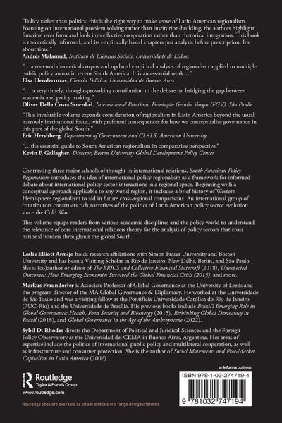 "...a renewed theoretical corpus and updated empirical analysis of regionalism applied to multiple public policy arenas in recent South America. It is an essential work..."