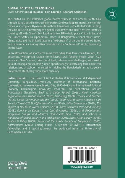 This edited volume examines global power-rivalry in and around South Asia through Bangladeshi lenses using imperfect and overlapping interest concentric-circles as a template. Dynamics from three transitions -the United States exiting the Cold War, China emerging as a global-level power, and India's eastern interests squaring off with China's Belt Road Initiative, BRI-help place China, India, and the United States (in alphabetical order) in Bangladesh's "inner-most" circle, China, India, and the United States in a "mid-stream" circle, and the United States and Latin America, among other countries, in the "outer-most" circle, depending on the issue. In an atmosphere of short-term gains over-riding long-term considerations, the desperate, widespread search for infrastructural funding inside South Asia enhances China's value, raises local heat, releases new challenges, with costly default consequences looming, issue-specific analysis overtaking formal bilateral relations and a stubborn uncertainty riddling the Bangladeshi air as its policy preferences stubbornly show more certainty.