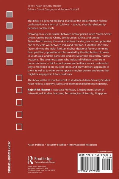 This book is a ground-breaking analysis of the India-Pakistan nuclear confrontation as a form of 'cold war' - that is, a hostile relationship between nuclear rivals. Drawing on nuclear rivalries between similar pairs (United States-Soviet Union, United States-China, Soviet Union-China, and United States-North Korea), the work examines the rise, process and potential end of the cold war between India and Pakistan. It identifies the three factors driving the India-Pakistan rivalry: ideational factors stemming from partition; oppositional roles created by the distribution of power in South Asia; and the particular kind of relationship created by nuclear weapons. The volume assesses why India and Pakistan continue in non-crisis times to think about power and military force in outmoded ways embedded in pre-nuclear times, and draws lessons applicable to them as well as to other contemporary nuclear powers and states that might be engaged in future cold wars.