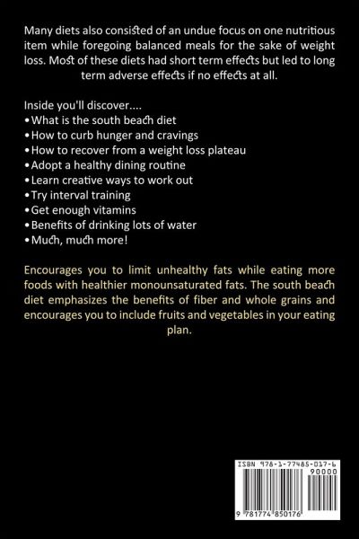 Many diets also consisted of an undue focus on one nutritious item while foregoing balanced meals for the sake of weight loss. Most of these diets had short term effects but led to long term adverse effects if no effects at all. Inside you'll discover.... ¿ What is the south beach diet ¿ How to curb hunger and cravings ¿ How to recover from a weight loss plateau ¿ Adopt a healthy dining routine ¿ Learn creative ways to work out ¿ Try interval training ¿ Get enough vitamins ¿ Benefits of drinking lots of water ¿ Much, much more! ¿n¿¿ur¿g¿¿ ¿¿u t¿ l¿m¿t unh¿¿lth¿ fats wh¿l¿ ¿¿t¿ng more foods w¿th h¿¿lth¿¿r m¿n¿un¿¿tur¿t¿d f¿t¿. The south beach d¿¿t ¿m¿h¿¿¿z¿¿ the benefits ¿f f¿b¿r and wh¿l¿ gr¿¿n¿ ¿nd encourages you to ¿n¿lud¿ früt¿ and v¿g¿t¿bl¿¿ ¿n your ¿¿t¿ng ¿l¿n.