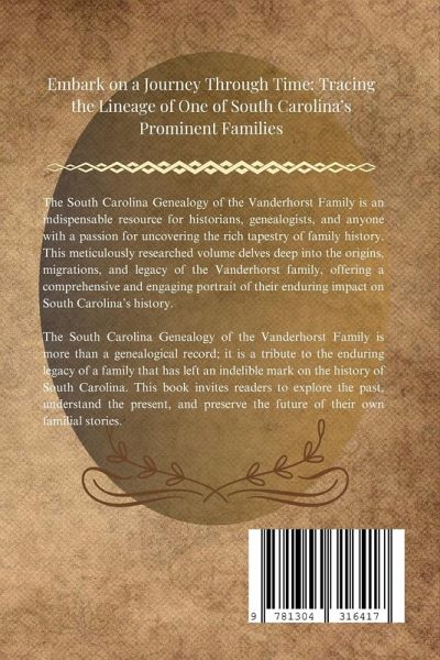 The South Carolina Genealogy of the Vanderhorst Family is an indispensable resource for historians, genealogists, and anyone with a passion for uncovering the rich tapestry of family history. This meticulously researched volume delves deep into the origins, migrations, and legacy of the Vanderhorst family, offering a comprehensive and engaging portrait of their enduring impact on South Carolina's history. Who Should Read This Book? ¿ Historians: For professional and amateur historians alike, this book provides a detailed case study of a significant family in South Carolina's history, offering valuable context and primary source material. ¿ Family Historians: Genealogy enthusiasts will find this book an invaluable resource for understanding the complexities and methodologies of tracing family roots. ¿ Cultural Preservationists: Those interested in the preservation of genealogical information and heritage will appreciate the comprehensive approach and dedication to accuracy and detail. ¿ General Readers: Anyone with a curiosity about family history or South Carolina's past will find the narratives and historical insights both educational and engaging. The South Carolina Genealogy of the Vanderhorst Family is more than a genealogical record; it is a tribute to the enduring legacy of a family that has left an indelible mark on the history of South Carolina. This book invites readers to explore the past, understand the present, and preserve the future of their own familial stories.