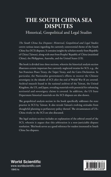 The South China Sea Disputes: Historical, Geopolitical and Legal Studies covers various issues regarding the currently controversial theme of the South China Sea (SCS) disputes. It contains insights by scholars mostly from Republic of China (Taiwan), along with ones from Peoples' Republic of China (mainland China), the Philippines, Australia, and the United States (US). The book is divided into three sections, wherein the historical analysis section illustrates certain important but currently neglected treaties for SCS, e.g., the San Francisco Peace Treaty, the Taipei Treaty, and the Cairo Declaration. In particular, the Nationalist government's efforts to recover the Chinese sovereignty in the islands of SCS after the end of World War II are covered. Archival research found in the national archives of the Taiwan, the United Kingdom, the US, and Japan, revealing materials with potential for enhancing territorial and sovereignty claims is covered. In addition, the US State Department historical materials on the SCS disputes are also shown. The geopolitical analysis section in the book specifically addresses the state practice in SCS by Taiwan. It also reveals Taiwan's evolving attitudes from thoughtful planning to perfunctory policy thereof. The circumstances of US–China rivalry in the SCS are also discussed. The legal analysis section includes an explanation of the arbitral award of the SCS, wherein it argues that this arbitration is a non-justiciable dispute resolution. This book serves as a good reference for readers interested in South China Sea disputes.