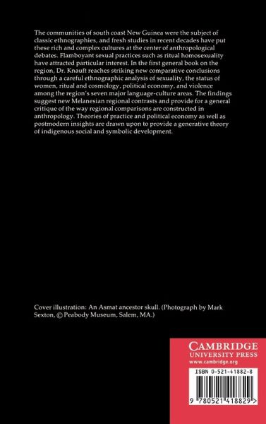 The communities of south coast New Guinea were the subject of classic ethnographies, and fresh studies in recent decades have put these rich and complex cultures at the centre of anthropological debates. Flamboyant sexual practices, such as ritual homosexuality, have attracted particular interest. In the first general book on the region, Dr Knauft reaches striking new comparative conclusions through a careful ethnographic analysis of sexuality, the status of women, ritual and cosmology, political economy, and violence among the region's seven major language-culture areas. The findings suggest new Melanesian regional contrasts and provide for a general critique of the way regional comparisons are constructed in anthropology. Theories of practice and political economy as well as post-modern insights are drawn upon to provide a generative theory of indigenous social and symbolic development.