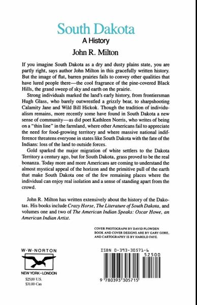 If you imagine South Dakota as a dry and dusty plains state, you are partly right, says author John Milton in this gracefully written history. But the image of flat, barren prairies fails to convey other qualities that have lured people there-the cool fragrance of the pine-covered Black Hills, the grand sweep of sky and earth on the prairie.