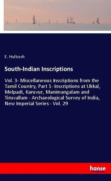 South-Indian Inscriptions - Vol. 3- Miscellaneous Inscriptions from the Tamil Country, Part 1- Inscriptions at Ukkal, Melpadi, Karuvur, Manimangalam and Tiruvallam - Archaeological Survey of India, New Imperial Series - Vol. 29 is an unchanged, high-quality reprint of the original edition of 1899.Hansebooks is editor of the literature on different topic areas such as research and science, travel and expeditions, cooking and nutrition, medicine, and other genres. As a publisher we focus on the preservation of historical literature. Many works of historical writers and scientists are available today as antiques only. Hansebooks newly publishes these books and contributes to the preservation of literature which has become rare and historical knowledge for the future.
