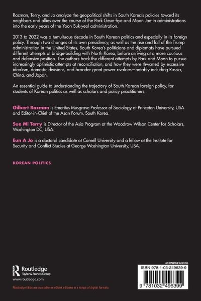 2013 to 2022 was a tumultuous decade in South Korean politics and especially in its foreign policy. Through two changes of its own presidency, as well as the rise and fall of the Trump administration in the United States, South Korea's politicians and diplomats have pursued different attempts at bridge-building with North Korea, before arriving at a more cautious and defensive position. The authors track the different attempts by Park and Moon to pursue increasingly optimistic attempts at reconciliation, and how they were thwarted by excessive idealism, domestic divisions, and broader great power rivalries-notably including Russia, China, and Japan.