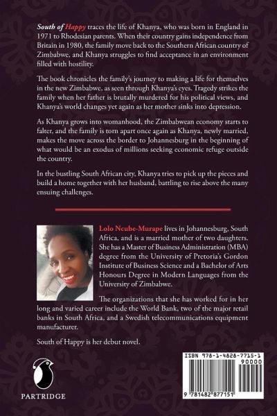South of Happy traces the life of Khanya, who was born in England in 1971 to Rhodesian parents. When their country gains independence from Britain in 1980, the family move back to the Southern African country of Zimbabwe, and Khanya struggles to find acceptance in an environment filled with hostility. The book chronicles the family’s journey to making a life for themselves in the new Zimbabwe, as seen through Khanya’s eyes. Tragedy strikes the family when her father is brutally murdered for his political views, and Khanya’s world changes yet again as her mother sinks into depression. As Khanya grows into womanhood, the Zimbabwean economy starts to falter, and the family is torn apart once again as Khanya, newly married, makes the move across the border to Johannesburg in the beginning of what would be an exodus of millions seeking economic refuge outside the country. In the bustling South African city, Khanya tries to pick up the pieces and build a home together with her husband, battling to rise above the many ensuing challenges.