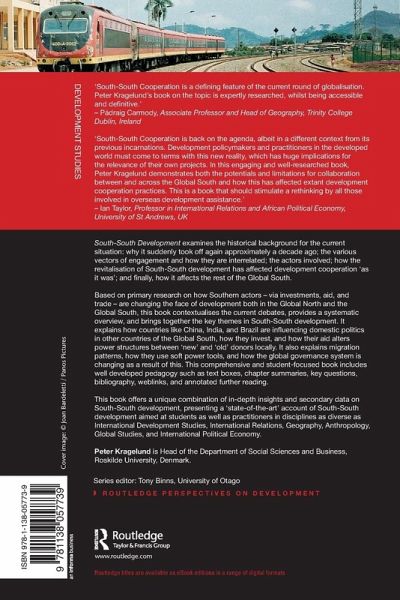 South-South Development examines the historical background for the current situation: why it suddenly took off again approximately a decade ago; the various vectors of engagement and how they are interrelated; the actors involved; how the revitalisation of South-South development has affected development cooperation 'as it was'; and finally, how it affects the rest of the Global South. Based on primary research on how Southern actors - via investments, aid, and trade - are changing the face of development both in the Global North and the Global South, this book contextualises the current debates, provides a systematic overview, and brings together the key themes in South-South development. It explains how countries like China, India, and Brazil are influencing domestic politics in other countries of the Global South, how they invest, and how their aid alters power structures between 'new' and 'old' donors locally. It also explains migration patterns, how they use soft power tools, and how the global governance system is changing as a result of this. This comprehensive and student-focused book includes well developed pedagogy such as text boxes, chapter summaries, key questions, bibliography, weblinks, and annotated further reading. This book offers a unique combination of in-depth insights and secondary data on South-South development, presenting a 'state-of-the-art' account of South-South development aimed at students as well as practitioners in disciplines as diverse as International Development Studies, International Relations, Geography, Anthropology, Global Studies, and International Political Economy.