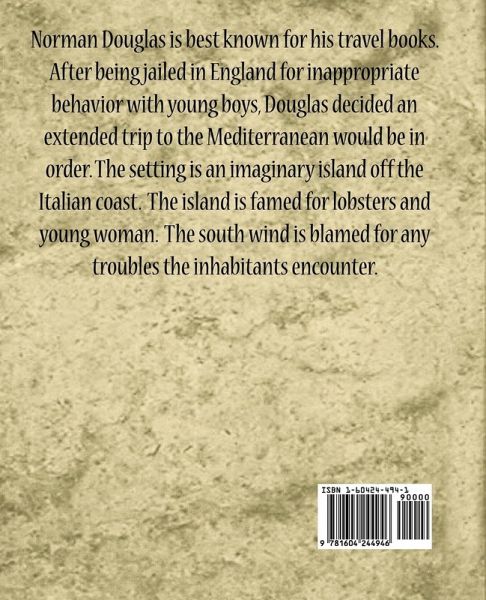 Norman Douglas is best known for his travel books. After being jailed in England for inappropriate behavior with young boys, Douglas decided an extended trip to the Mediterranean would be in order. The setting is an imaginary island off the Italian coast. The island is famed for lobsters and young woman. The south wind is blamed for any troubles the inhabitants encounter.
