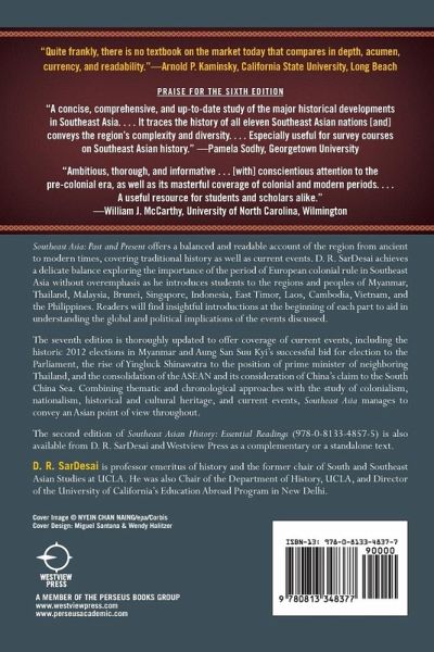 Southeast Asia: Past and Present offers a balanced and readable account of the region from ancient to modern times, covering traditional history as well as current events. D. R. SarDesai achieves a delicate balance exploring the importance of the period of European colonial rule in Southeast Asia without overemphasis as he introduces students to the regions and peoples of Myanmar, Thailand, Malaysia, Brunei, Singapore, Indonesia, East Timor, Laos, Cambodia, Vietnam, and the Philippines. Readers will find insightful introductions at the beginning of each part to aid in understanding the global and political implications of the events discussed. The seventh edition is thoroughly updated to offer coverage of current events, including the historic 2012 elections in Myanmar and Aung San Suu Kyi's successful bid for election to the Parliament, the rise of Yingluck Shinawatra to the position of prime minister of neighboring Thailand, and the consolidation of the ASEAN and its consideration of China's claim to the South China Sea. Combining thematic and chronological approaches with the study of colonialism, nationalism, historical and cultural heritage, and current events, Southeast Asia manages to convey an Asian point of view throughout. The second edition of Southeast Asian History: Essential Readings (978-0-8133-4857-5) is also available from D. R. SarDesai and Westview Press as a complementary or a standalone text.